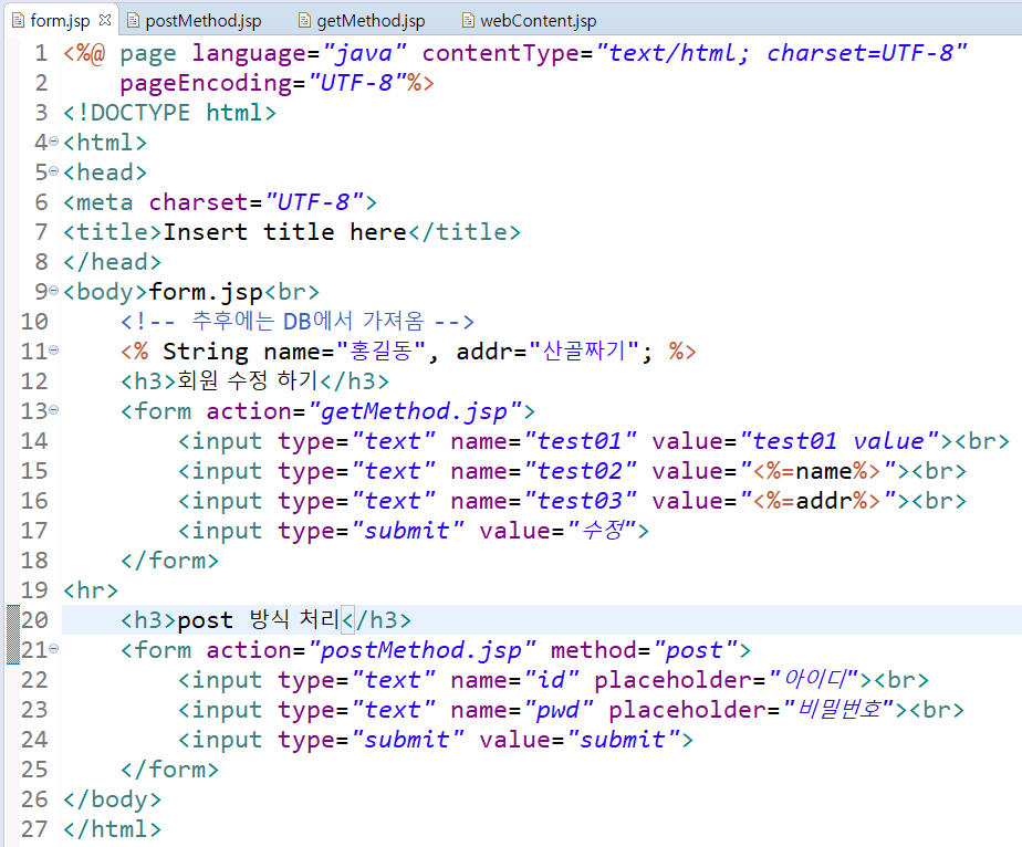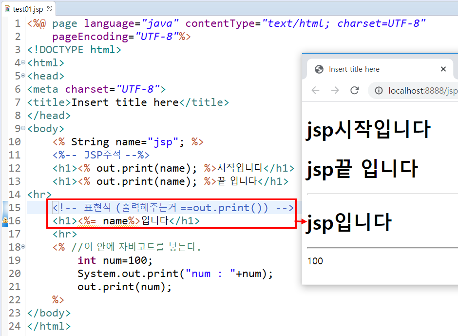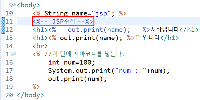 => 서버에서는 다른 언어를 확인하지 않고, JSP 언어를 html로 처리함