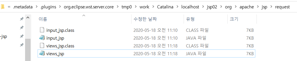 jsp 파일을 번역한 java파일이 있는걸 확인할 수 있다.