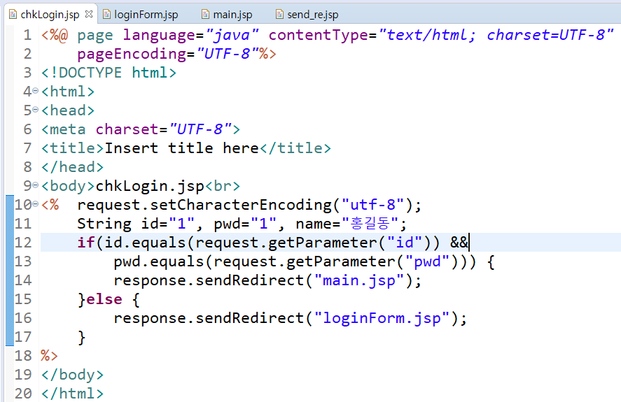 => 아이디와 비밀번호가 같으면 main.jsp 파일을 불러오고, 아니면 loginForm.jsp 파일을 불러온다.