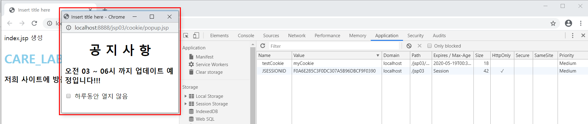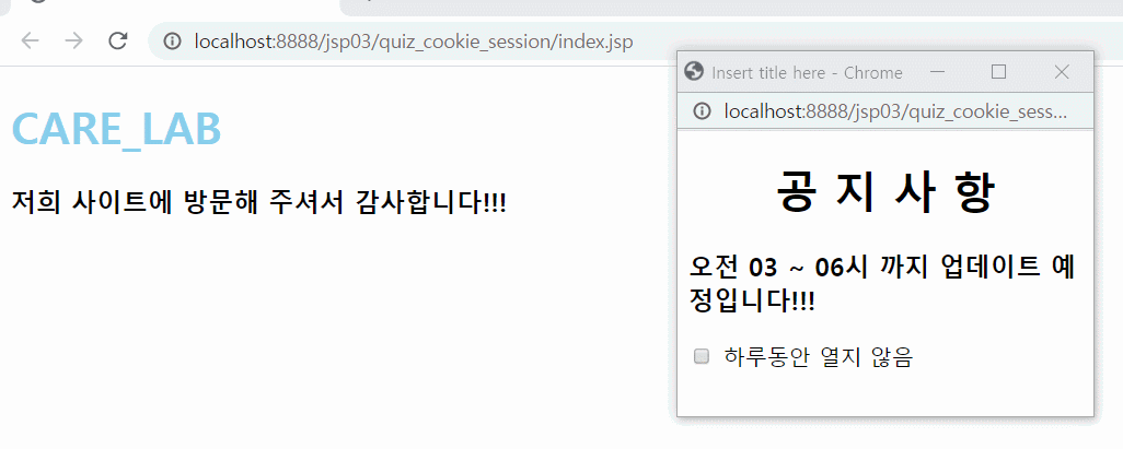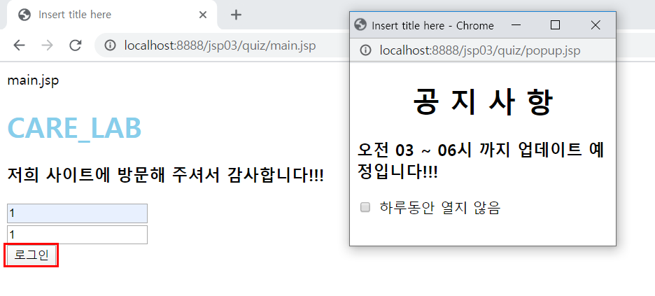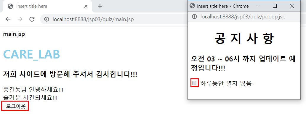 팝업(쿠키) + 로그인(세션)