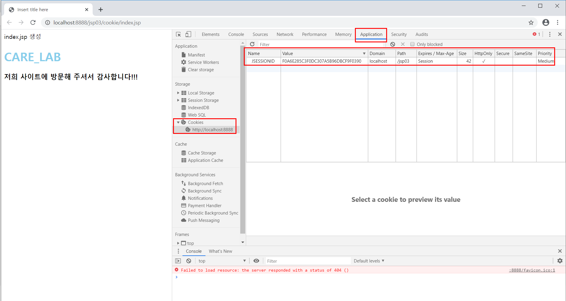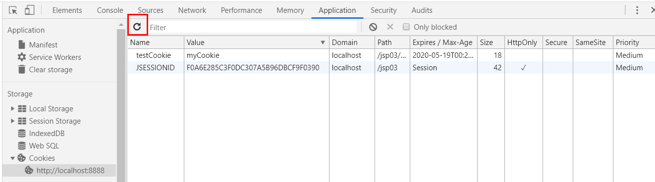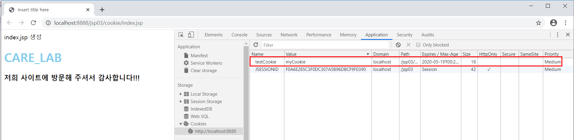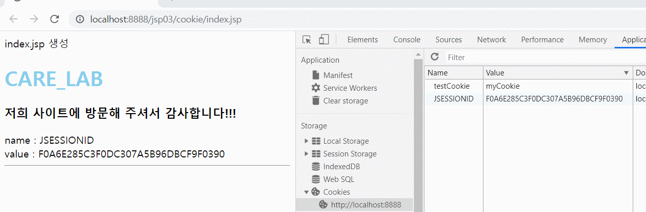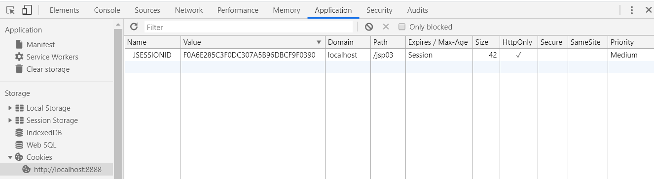 F12 => Application - cookies 에서 cookie를 확인할 수 있다.