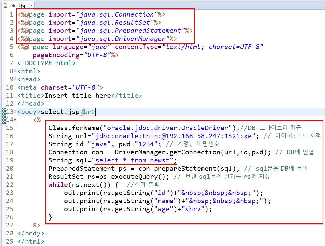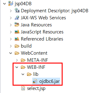 ojdbc6.jar을 WebContent - WEB-INF - lib 폴더안에 넣어야 오류가 나지않고 DB에 접근할 수 있다.