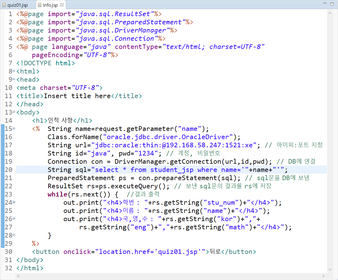| [200521.59일차] JSP 5 - 예제 연습 (로그인/회원가입/정보수정) (0) | 2020.05.21 |