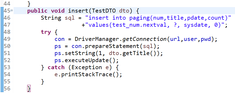 TestDAO에 insert 함수 추가