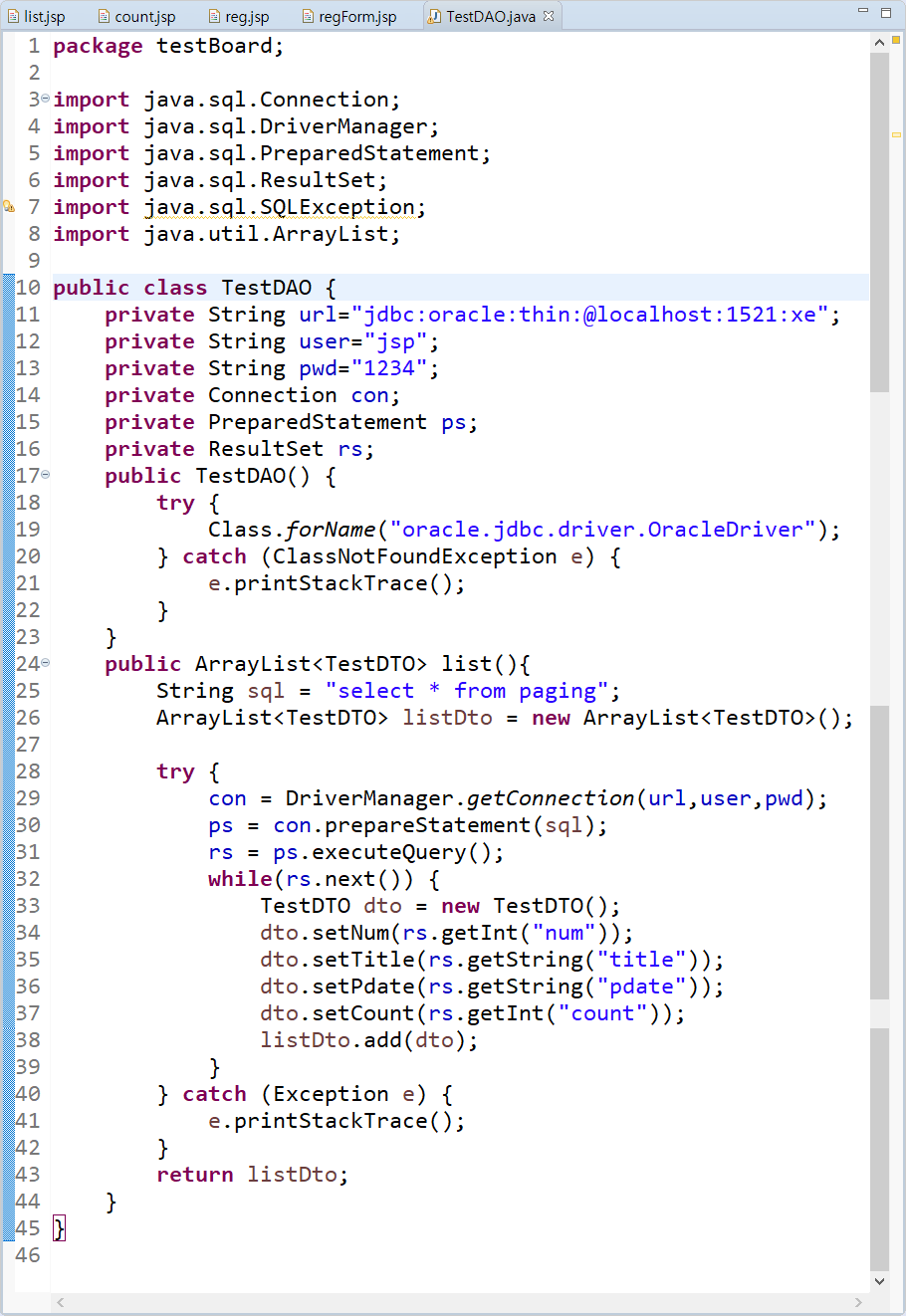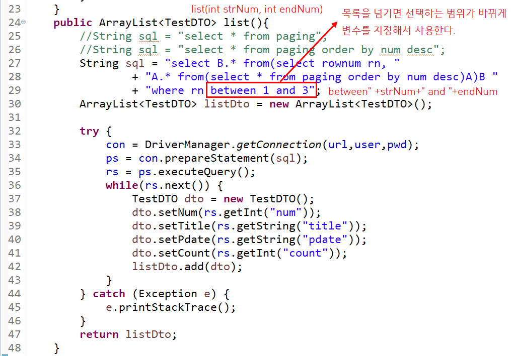 TestDAO list() 함수 수정
