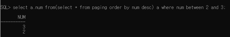 a.num => num 기준 내림차순으로 정렬한 paging의 num을 선택