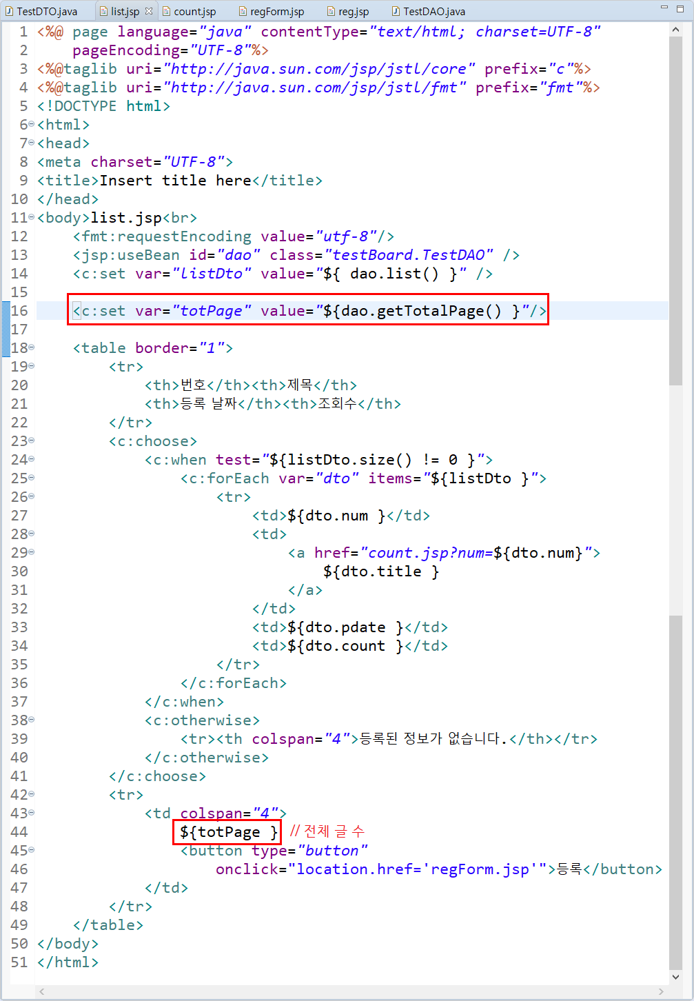 TestDAO에 getTotalPage() 함수 추가