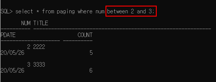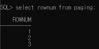 select rownum form paging;