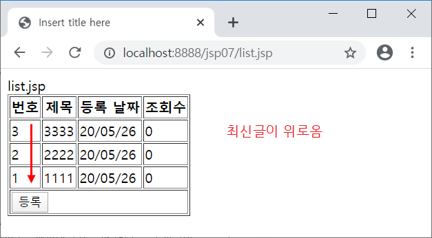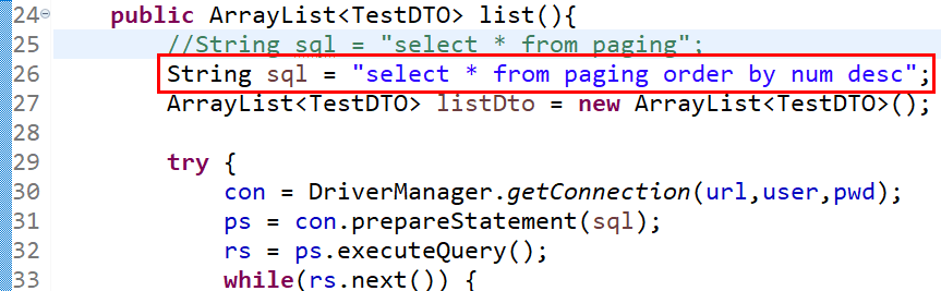 TestDAO에 list 함수 수정 - 최신글이 위로 오게 함