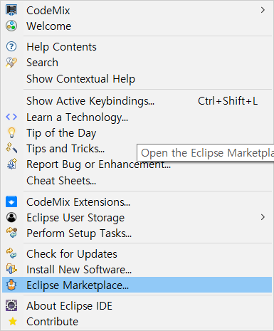 Eclipse 상단 메뉴 Help > Eclipse Marketplace