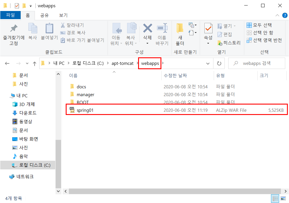 WEB-INF 부터 지우면 정상적으로 실행된다.