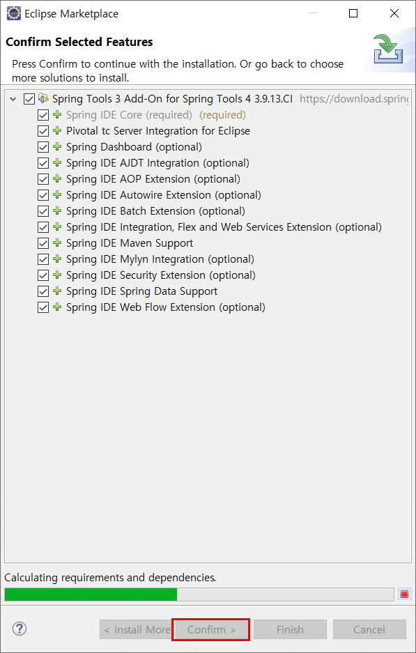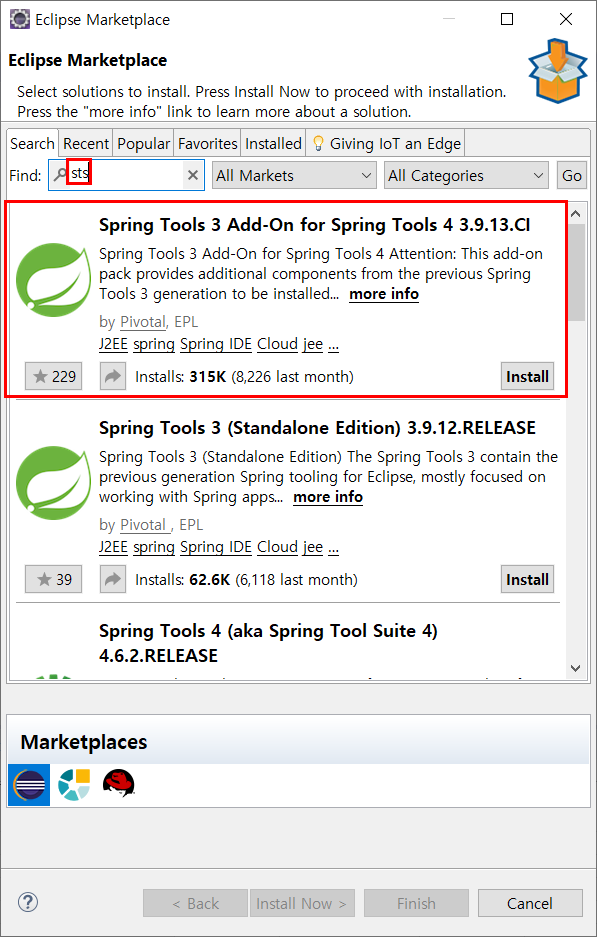 sts 검색 > 제일 위에 있는 Spring Tools 3 Add-On for Spring Tools 4 3.9.13.CI Install