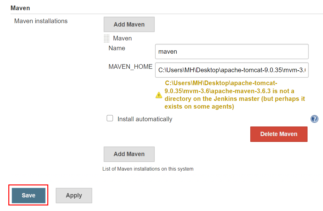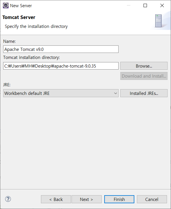 => automarically를 체크 해제하고 직접 경로를 설정한다. (이름은 아무거나 상관 없음)