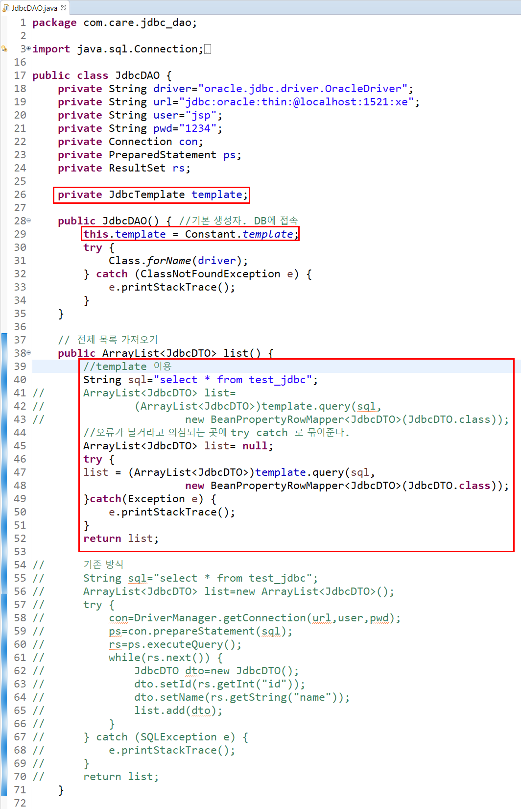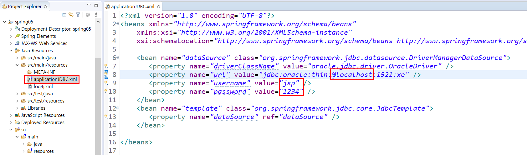 jdbc 오라클 xml설정 ( DB 접근 템플릿 )