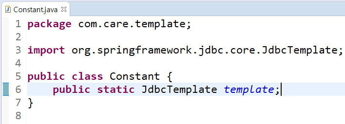 <bean name="template" class="org.springframework.jdbc.core.JdbcTemplate">