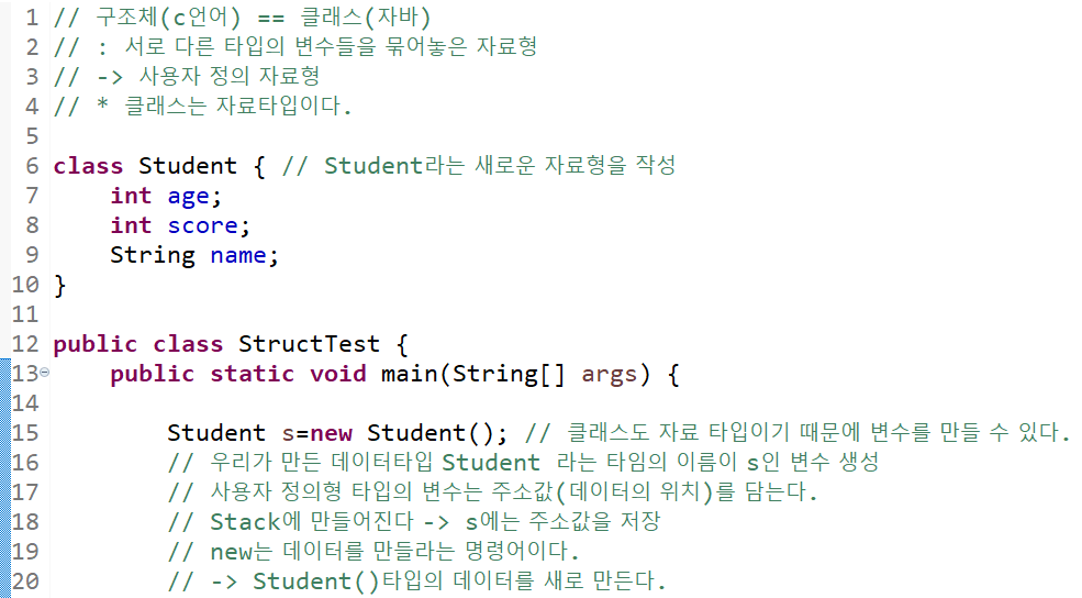 : 서로 다른 타입의 변수들을 묶어놓은 자료형