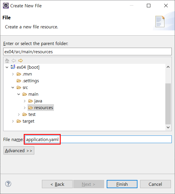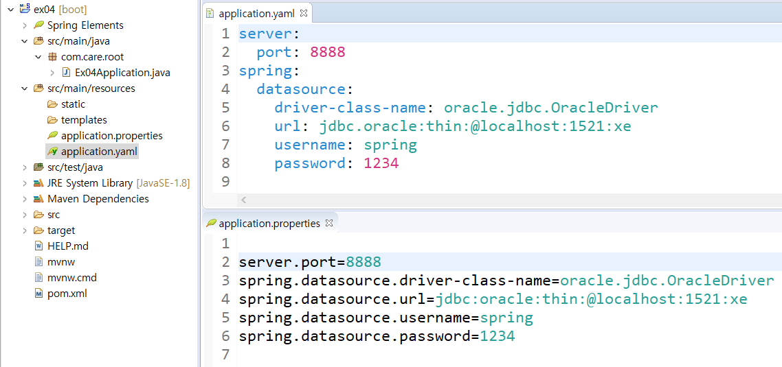 application.yaml( 기본 file로 확장자를 붙여 생성 ) / application.properties (기본적으로 있는 파일)